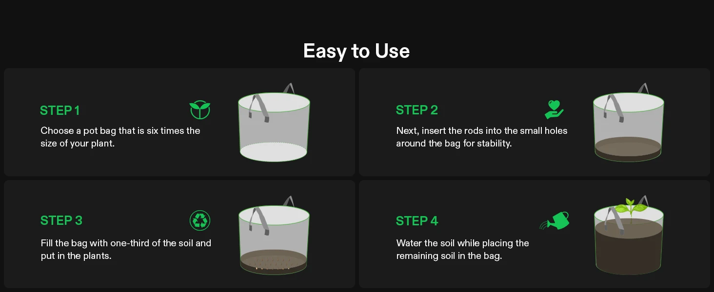 Evita o círculo de raízes e a supressão de ar da estrutura das raízes da planta.