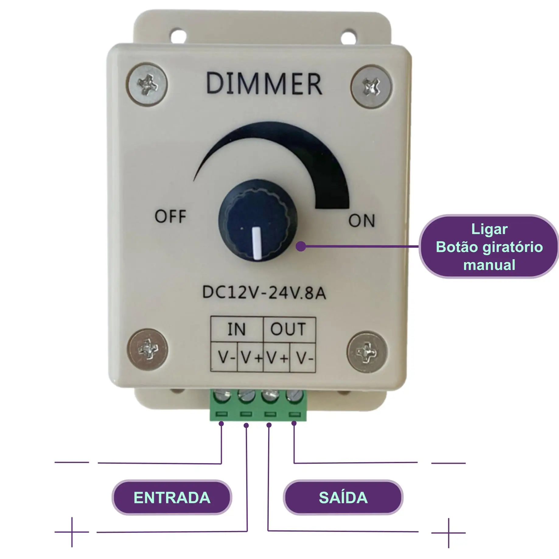 Dimmer Regulador De Tensão Led 12v A 24v 8A Interruptor Dimmer Rotativo Dimer Para Iluminação de 12v a 24v CC