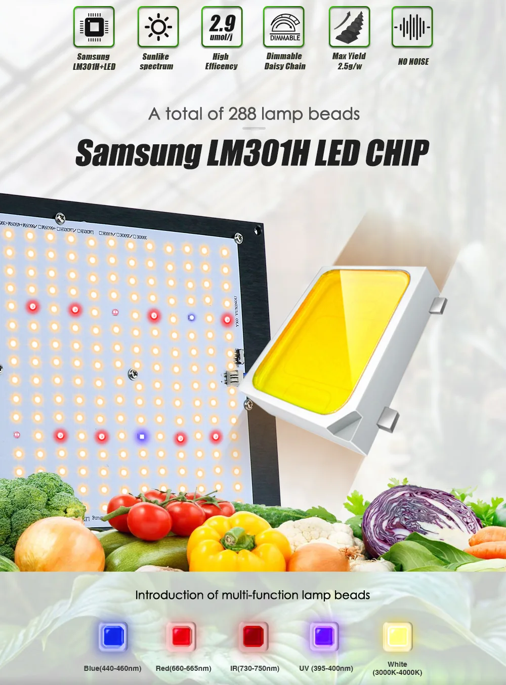 Features: Sam-ng LM301H COB led grow light full spectrum